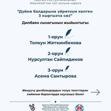 “ЖЫЛДЫН МЫКТЫ МУГАЛИМИ” СЫНАГЫНЫН ЖЕҢҮҮЧҮСҮ “КЫРГЫЗ ТИЛИ” ТӨШ БЕЛГИСИ МЕНЕН СЫЙЛАНДЫ