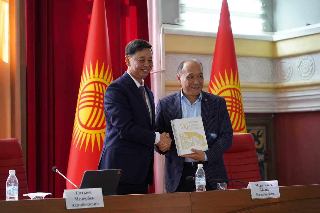 Иш чаранын соңунда Жогорку Соттун Төрагасы Медербек Сатыев Марат Иманкулов менен Мелис Мураталиевге атайын келип терең мазмундуу баяндама жасап, уңгужолдун маңызын кеңири ачып бергендери үчүн терең ыраазычылык билдирип, Кыргыз Республикасынын сот тутумунун 100 жылдыгы китептерин тапшырды.