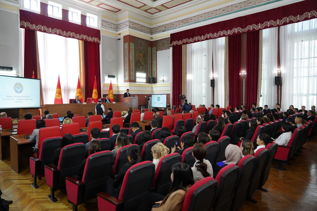 Кыргыз тилинин улуттук биримдикти бекемдөөдө жана дүйнөлүк маданий мейкиндикке чыгууда ээлеген ордуна өзгөчө көңүл бурду.