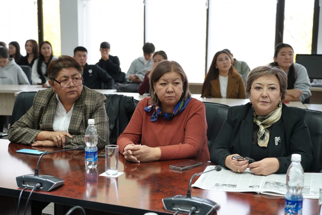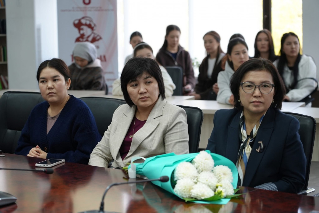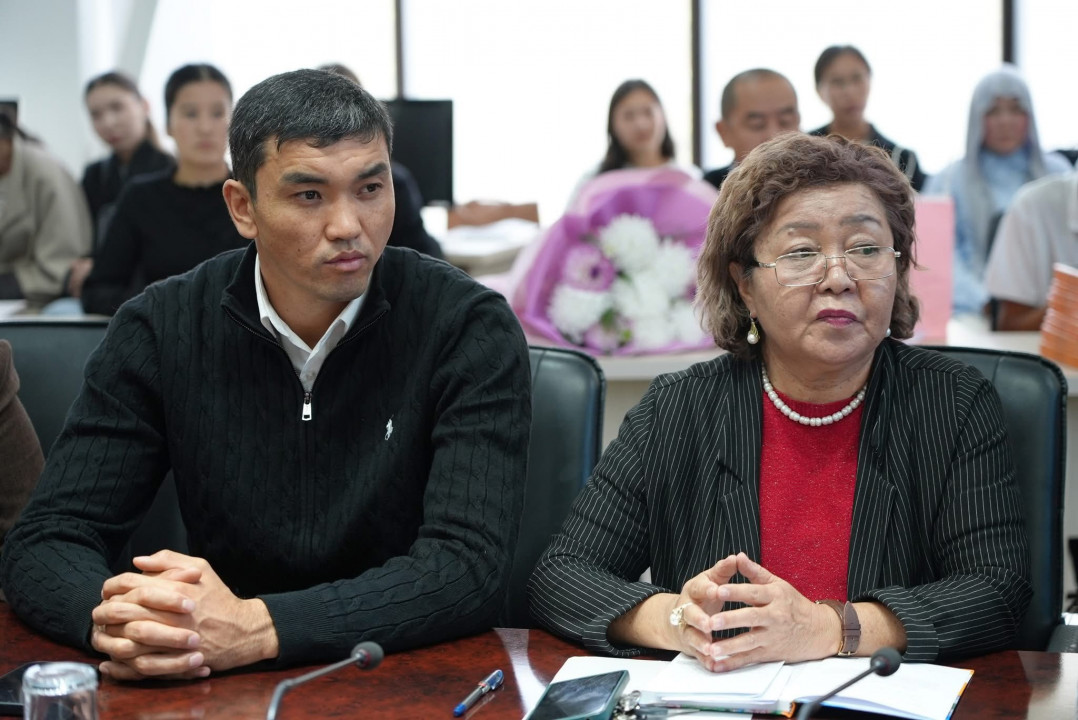 Таанытымдын жүрүшүндө сөздүктүн түзүүчүсү, кыргыз тили жана адабиятынын практикалык курсу кафедрасынын ага окутуучусу Таңсыкай Акматова эмгек тууралуу маалымат берип, сөздүктүн өзгөчөлүктөрүн жана маанисин түшүндүрүп берди.