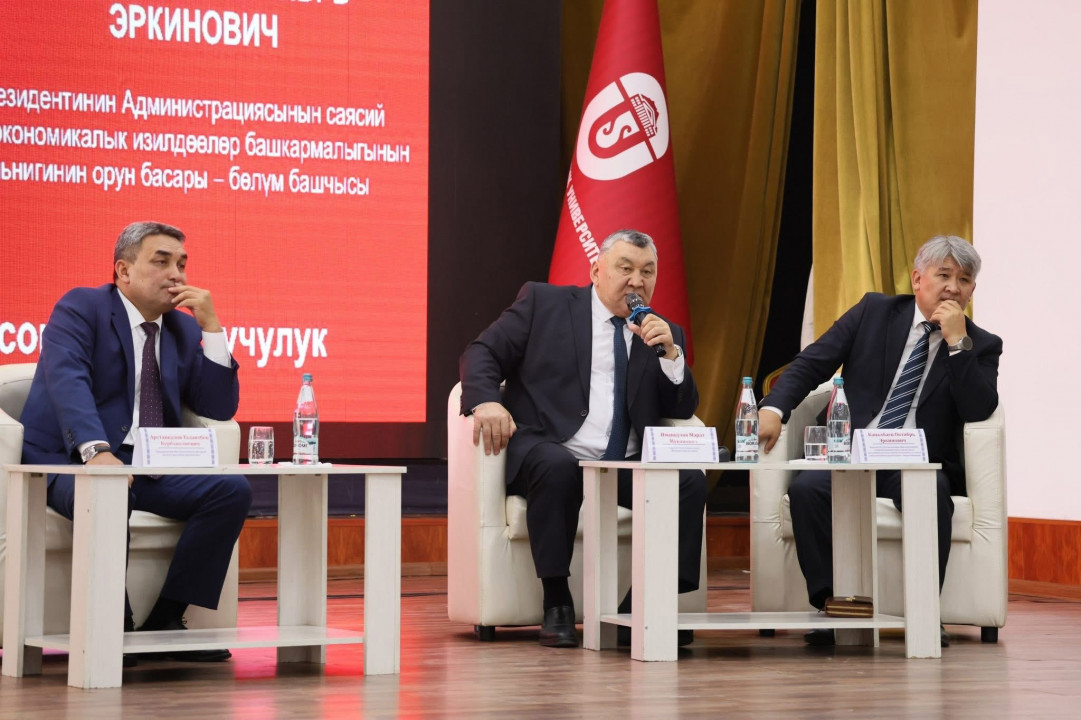 Ал эми окуу курсунун жыйынтыктоо бөлүгүндө Кыргыз Республикасынын Мамлекеттик катчысы Марат Иманкулов жана КР Президентинин Администрациясынын саясий жана экономикалык изилдөөлөр башкармалыгынын начальнигинин орун басары – бөлүм башчысы Октябрь Капалбаев Ош шаарындагы жогорку окуу жайларынын профессордук-окутуучулук курамы жана студенттери менен жолугушуу өткөрүштү.