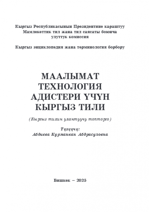 Түзүүчү: Абдиева Курманкан АбдрасуловнаКитепти көчүрүү жана онлайн окуу: Маалымат технология адистери үчүн кыргыз тили.pdf