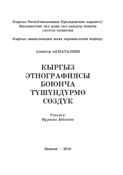 Түзүүчү: Нурзина Ыйсаева Китепти көчүрүү жана онлайн окуу: КЫРГЫЗ ЭТНОГРАФИЯСЫ БОЮНЧА ТҮШҮНДҮРМӨ СӨЗДҮК.pdf
