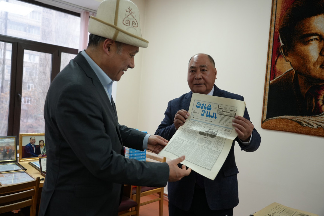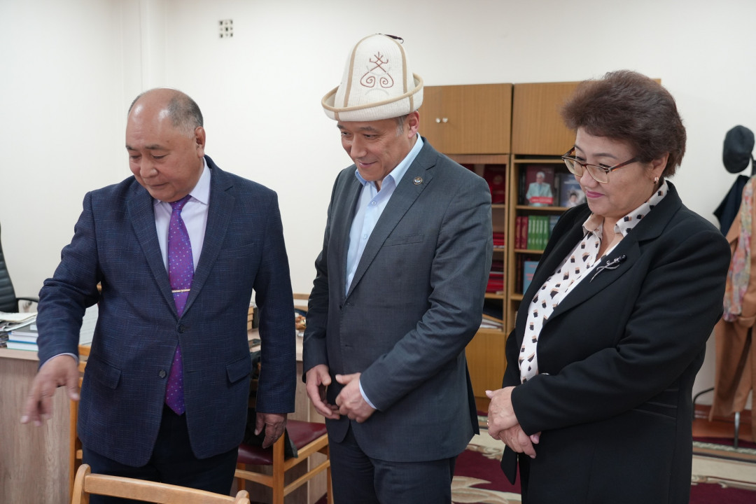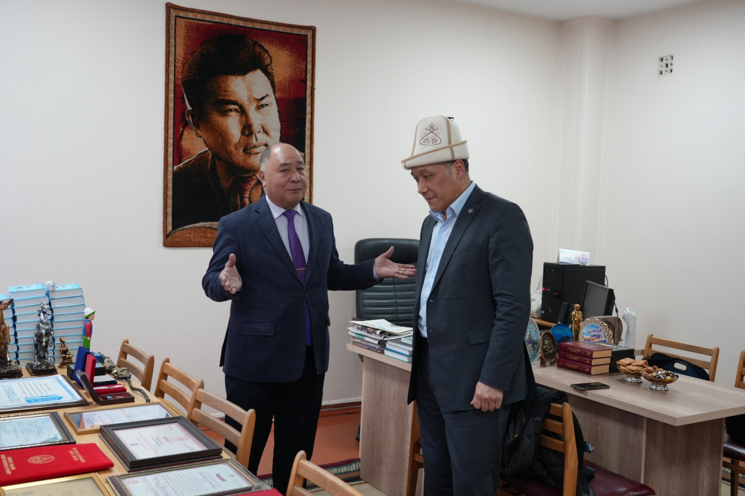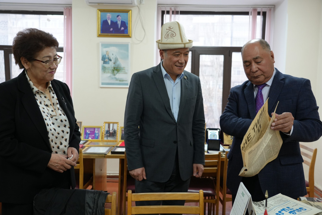 Кыргыз Республикасынын Президентине караштуу Мамлекеттик тил жана тил саясаты боюнча улуттук комиссиянын төрагасы Мелис Мураталиев «Кыргыз тили» коомунун президенти Райымжан Курбанов менен жолугушуп, коомдун ишмердүүлүгү жана аткарып жаткан иштер менен жеринде таанышты.
