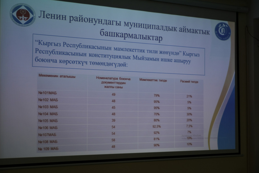 Бүгүн10-декабрда, Бишкек шаарынын Ленин административдик району боюнча муниципалдык администрациясында мамлекеттик тилдин колдонулушун өркүндөтүү жана тил саясатынын аткарылышын талдоого арналган жолугушуу өткөрүлдү.