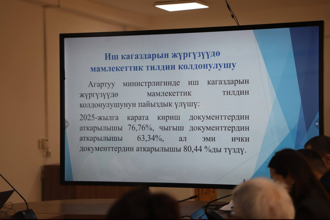 Жыйындын жүрүшүндө мамлекеттик тил жөнүндө мыйзамдын аткарылышы, иш кагаздарын жүргүзүүдө мамлекеттик тилдин колдонулушу, кызматкерлердин тилдик компетенциясын жогорулатуу маселелери, билим берүү уюмдарындагы окутуу жана тарбиялоо тили, окуу китептеринин сапаты, мугалимдердин квалификациясын жогорулатуу жана ведомстволор аралык кызматташтык маселелери кеңири талкууланды.